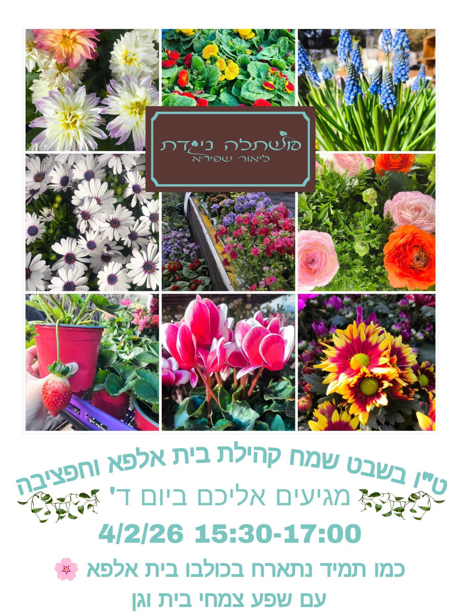 אנו זוג חקלאים, דור שני ממשגב שבגליל, מגדלים ומשווקים צמחי בית וגן. בבעלותנו משתלה ניידת עם מגוון צמחים ססגוני, קערות, אדניות ועוד, מגוון רחב וענק!
